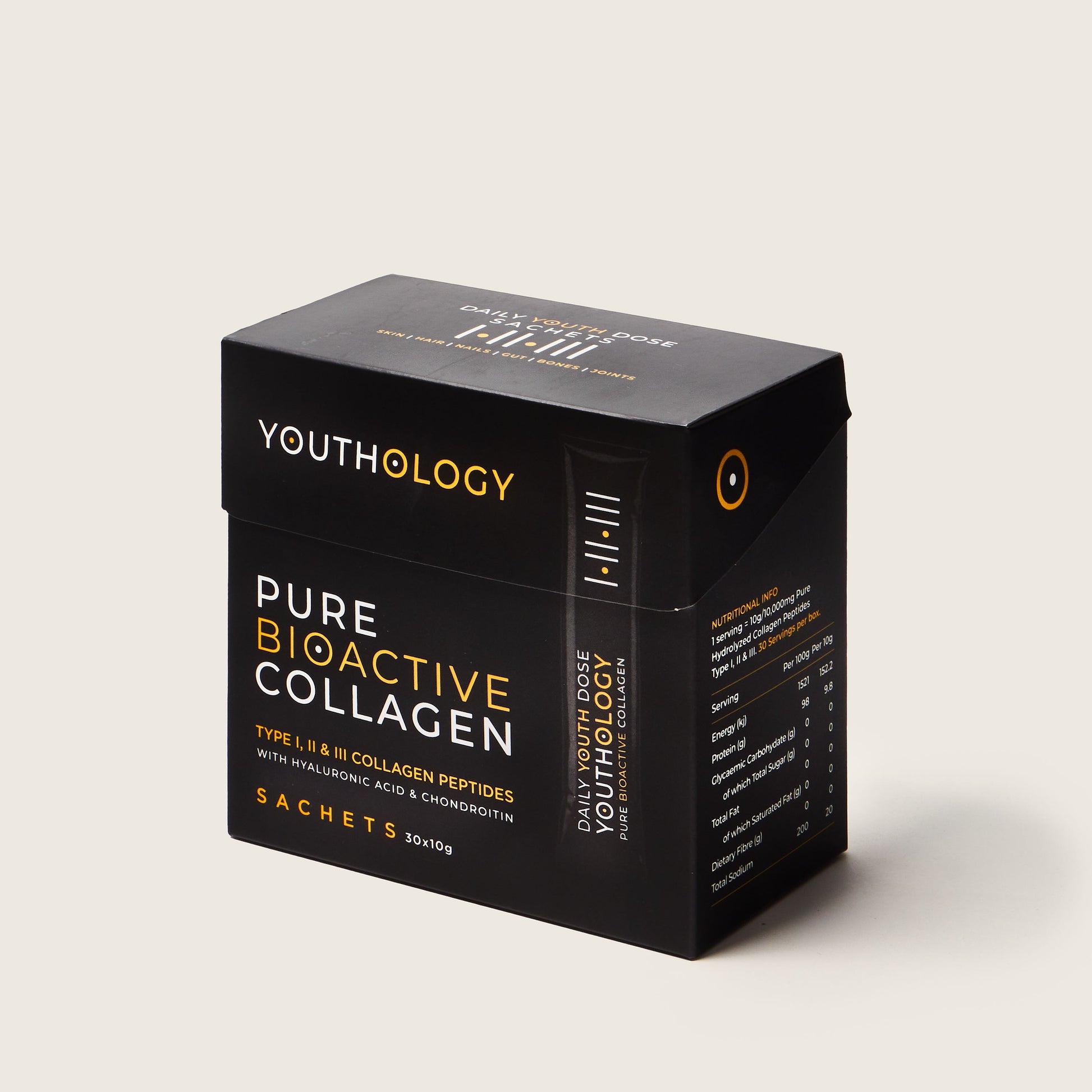 The bioactive ingredients in YOUTHOLOGY PURE COLLAGEN POWDER are absorbed by the body within 30 minutes after consumption, with 3 x higher bio-availability than regular collagens.